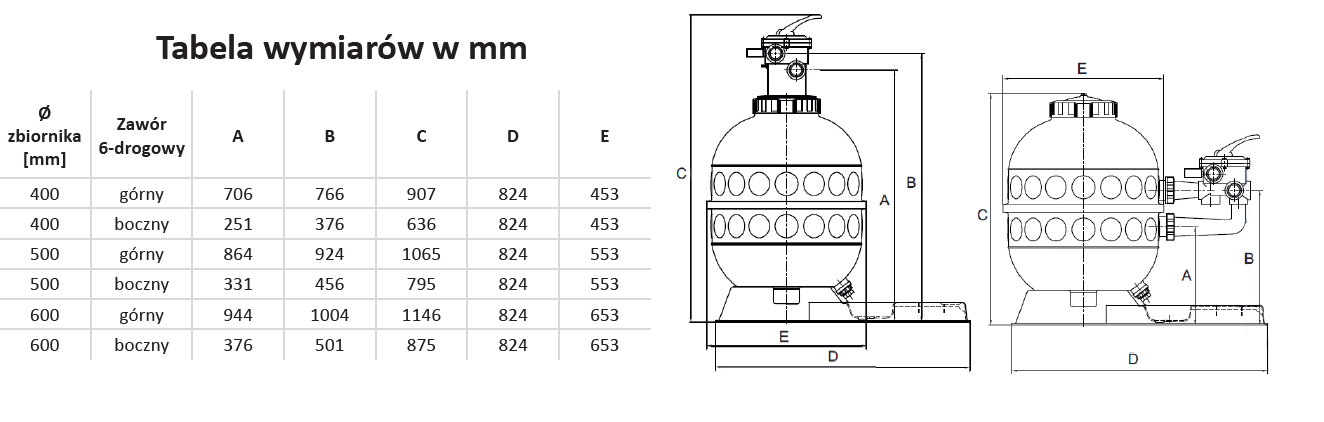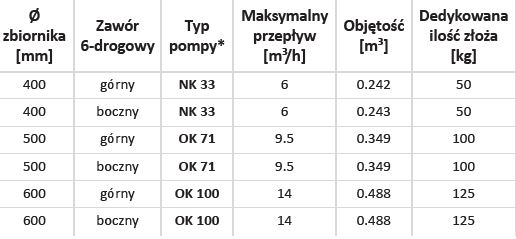 • Zalecane złoże filtracyjne: 0.4 – 0.8 mm
