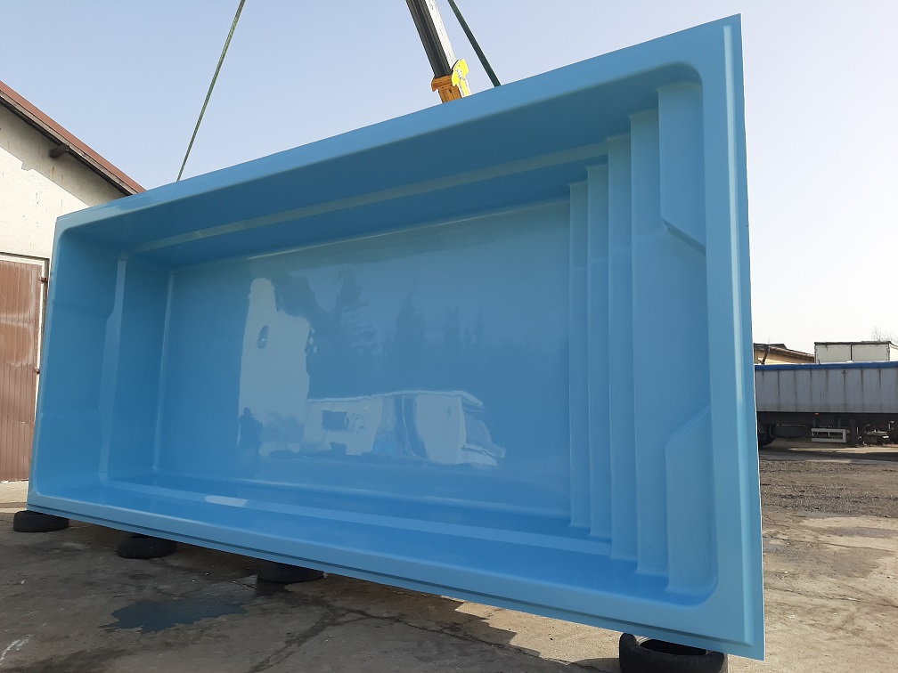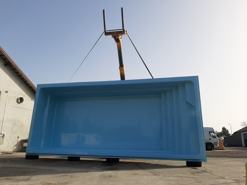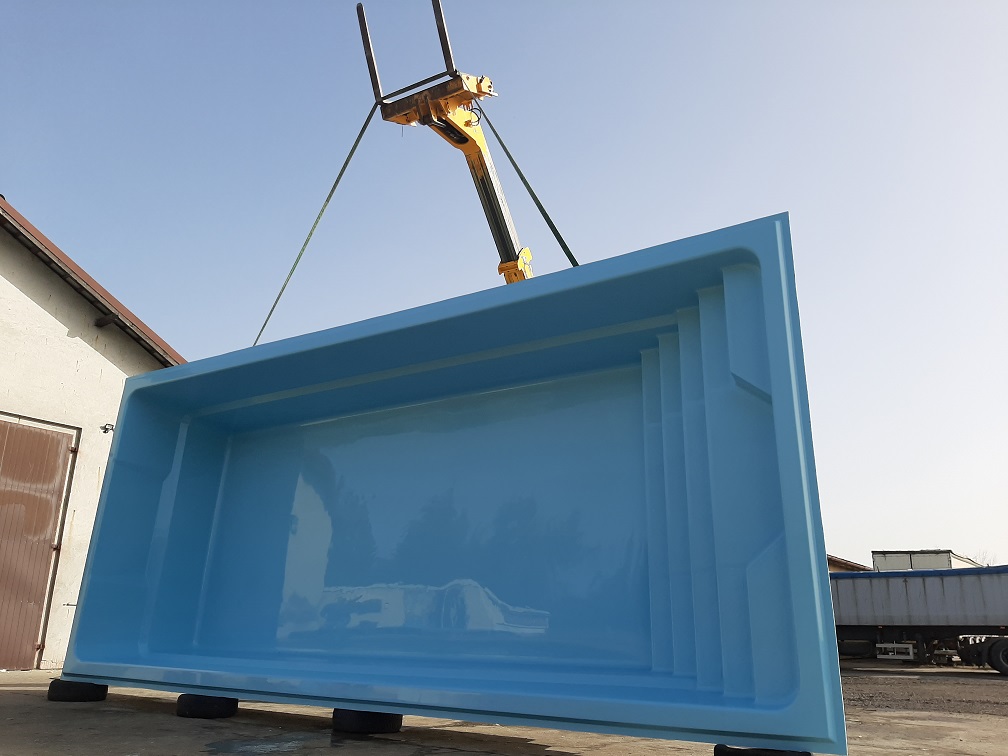 Basen poliestrowy o wymiarach 8,5 x 3,7 x 1,55 m